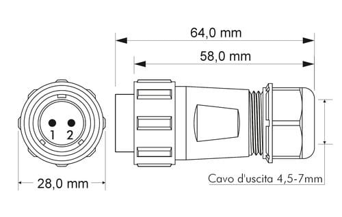 ALPHA ELETTRONICA - Spina volante SP21 due poli 44-54