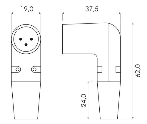 ALPHA ELETTRONICA - Spina XLR a 90° con manicotto serracavo in gomma - 3 poli 40-62