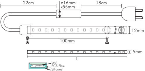 Striscia LED alimentata direttamente a 230Vac, non necessita di alcun driver.