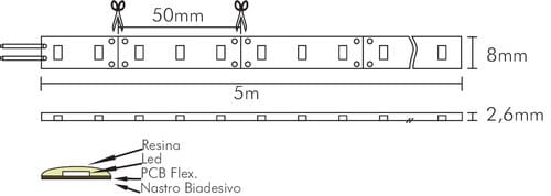 ALPHA ELETTRONICA - Striscia Led 60 Led/m 2835 - 12Vdc - 4,8W/m - Bianco freddo JO365042604PW