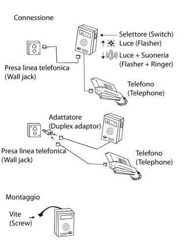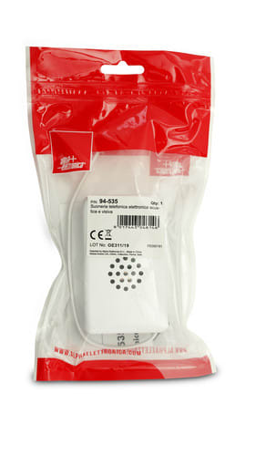 Suoneria telefonica che combina un avvisatore acustico particolarmente efficace con un flash lampeggiante. Grazie ad un selettore è possibile scegliere tra il segnale visivo oppure segnale acustico + segnale visivo.