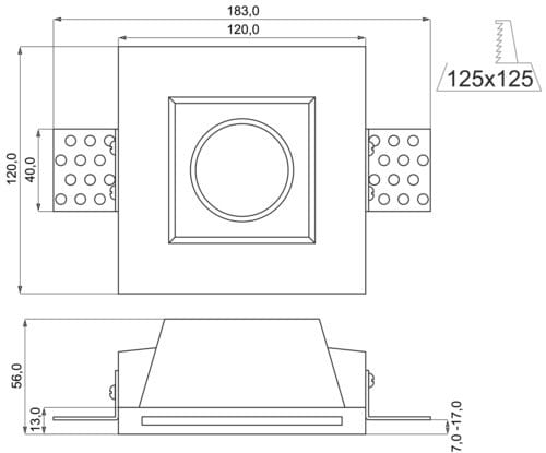 Foro incasso: 125 x 125mm