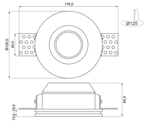 ALPHA ELETTRONICA - Supporto in gesso da incasso con cover in vetro per lampade LED - Ø120mm
