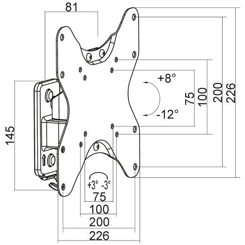 Inclinazione (Tilt): -12° +8°