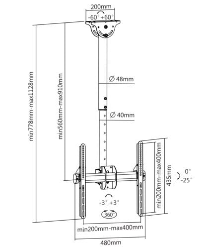 ALPHA ELETTRONICA - Supporto TV Telescopico da soffitto Orientabile, 32"-55" - estensione 56/91cm SU3255/55