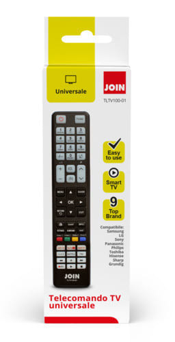 Telecomando universale per un dispositivo. Compatibile con la maggior parte dei TV Samsung, LG, Sony, Panasonic, Philips, Toshiba, Hisense, Sharp e Grundig. Semplice da configurare e utilizzare.