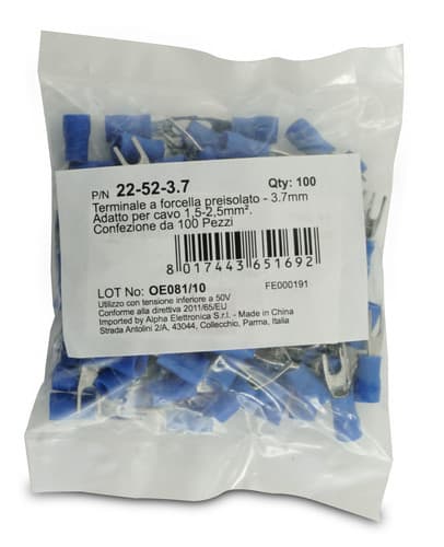 ALPHA ELETTRONICA - Terminale a forcella preisolato - 3,7mm - Adatto per cavo 1,5-2,5mm² 22-52-3.7