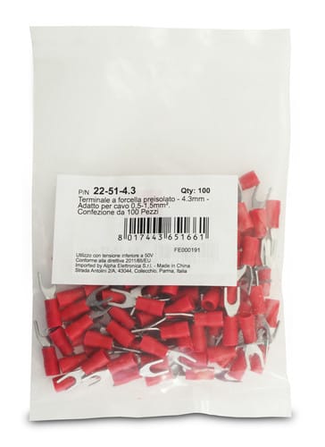 ALPHA ELETTRONICA - Terminale a forcella preisolato - 4,3mm - Adatto per cavo 0,5-1,5mm²