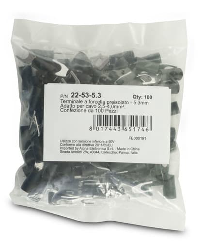 ALPHA ELETTRONICA - Terminale a forcella preisolato - 5,3mm - Adatto per cavo 2,5-4mm² 22-53-5.3