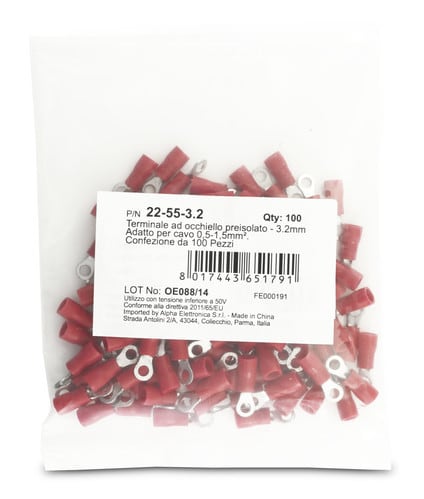 ALPHA ELETTRONICA - Terminale ad occhiello preisolato - 3,2mm - Adatto per cavo 0,5-1,5mm² 22-55-3.2