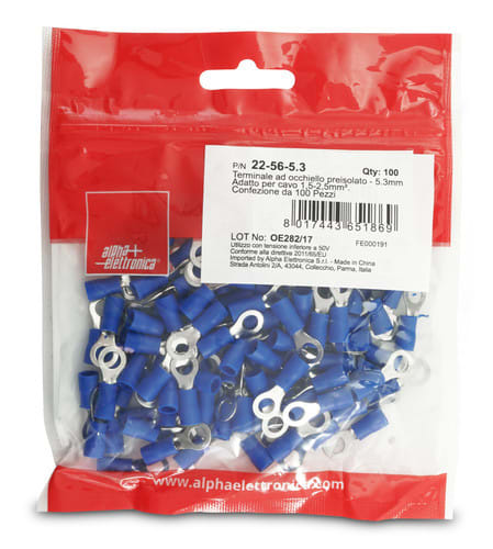 ALPHA ELETTRONICA - Terminale ad occhiello preisolato - 5,3mm - Adatto per cavo 1,5-2,5mm² 22-56-5.3