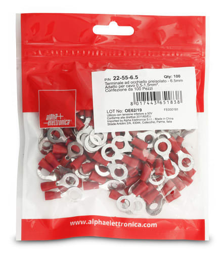 ALPHA ELETTRONICA - Terminale ad occhiello preisolato - 6,5mm - Adatto per cavo 0,5-1,5mm² 22-55-6.5