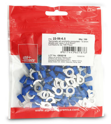 ALPHA ELETTRONICA - Terminale ad occhiello preisolato - 6,5mm - Adatto per cavo 1,5-2,5mm² 22-56-6.5