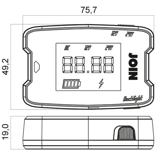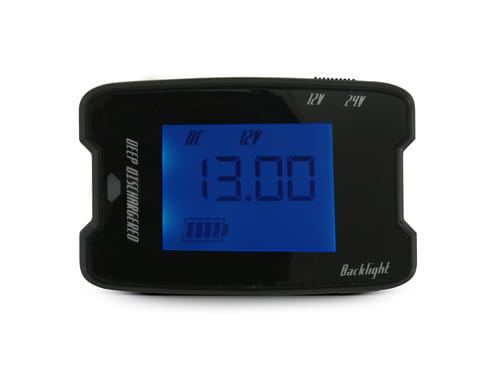 L'indicazione dello stato della batteria avviene tramite tre indicazioni fornite dal display: tensione in cifre digitali, stato della batteria tramite segmenti e una indicazione luminosa a LED. La retroilluminazione del display è blu ma in caso di tensione di batteria bassa la colorazione diventerà rossa.