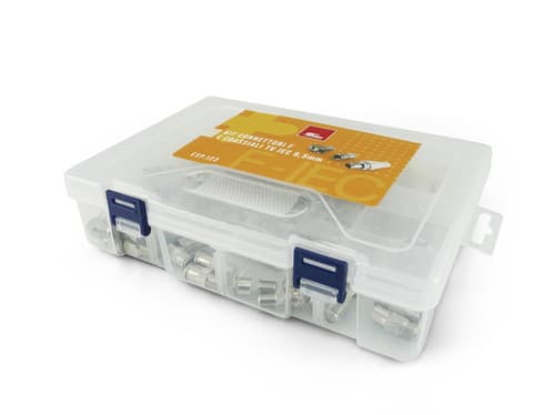 Pratica valigetta contenente un assortimento di connettori e adattatori d'antenna F e IEC da 9,5mm (103pz).