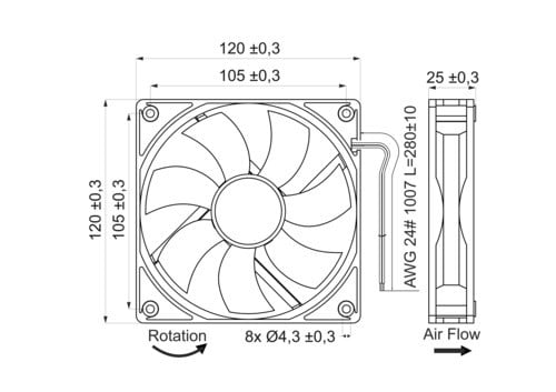 Dimensioni (LxWxH): 120 x 120 x 25mm