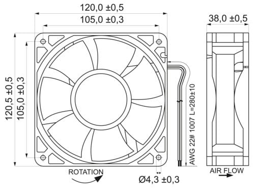 ALPHA ELETTRONICA - Ventola DC 120x120x38 12V Cuscinetti 120,10CFM FNHD-1238H12B