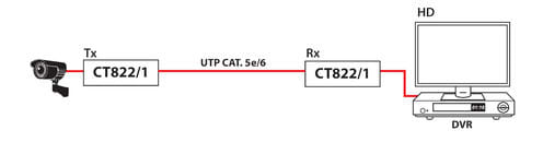 Il balun passivo CT822/1 è un convertitore per la trasmissione del segnale video su cavo twistato Cat5 o superiore per applicazioni TVCC.
