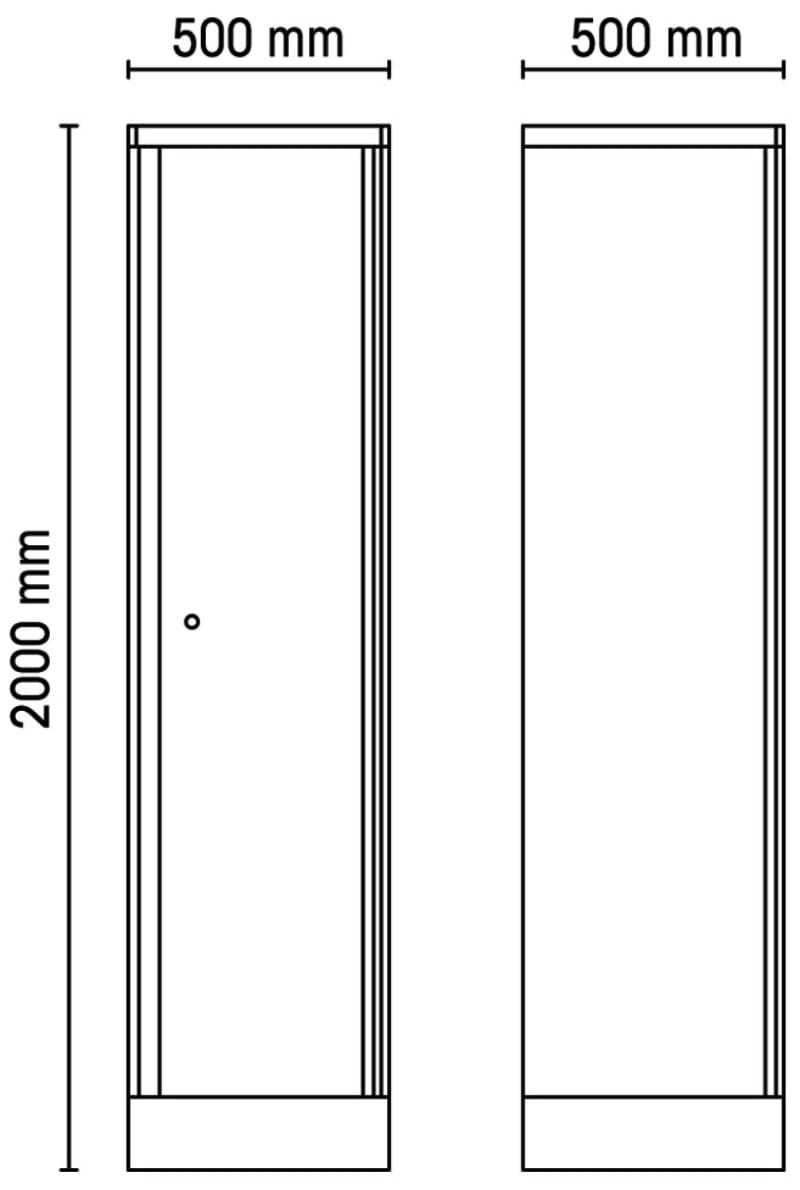 - 3 ripiani amovibili regolabili in altezza - Pratica barra appendiabiti richiudibile, posizionata sotto il primo ripiano - Dotato di serratura - Misure utili interne: 1798x497x403 mm