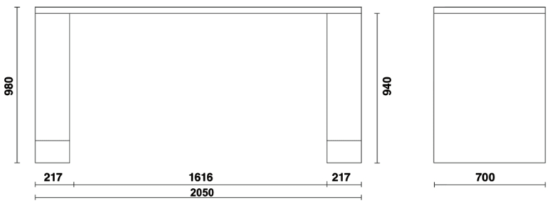 Con piano da lavoro 2050x700 mm rivestito da uno strato di PVC antiurto e antigraffio resistente agli idrocarburi - Fori per la collocazione di una morsa 1599F/150 - 1599GI/150 (da ordinare separatamente) - Piedini regolabili in altezza