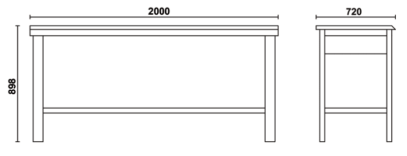 Caratteristiche principali: - Piano di lavoro in legno multistrato con fori per la collocazione di una morsa 1599F/125 - 1599GI/125 (da ordinare separatamente) - Struttura in acciaio con 4 gambe di sostegno - Capacità di carico statico: 600 kg - Ripiano inferiore portaoggetti con capacità di carico 150 kg (uniformemente distribuiti) - Predisposizione per il fissaggio al pavimento 2000x930x720 mm
