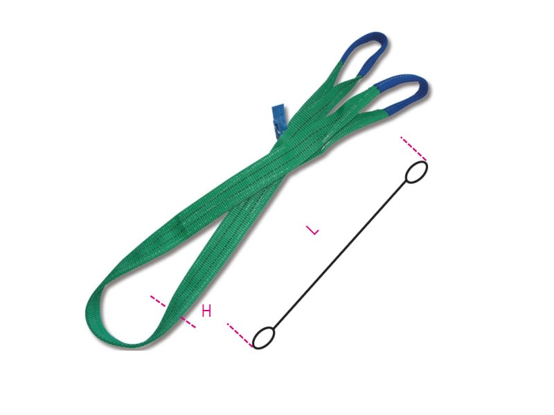 Braca per sollevamento 2t verde nastro piatto a due strati, asole rinforzate, poliestere alta tenacità (PES). Fasce sollevamento EN1492-1 verde 2 ton. - L5.