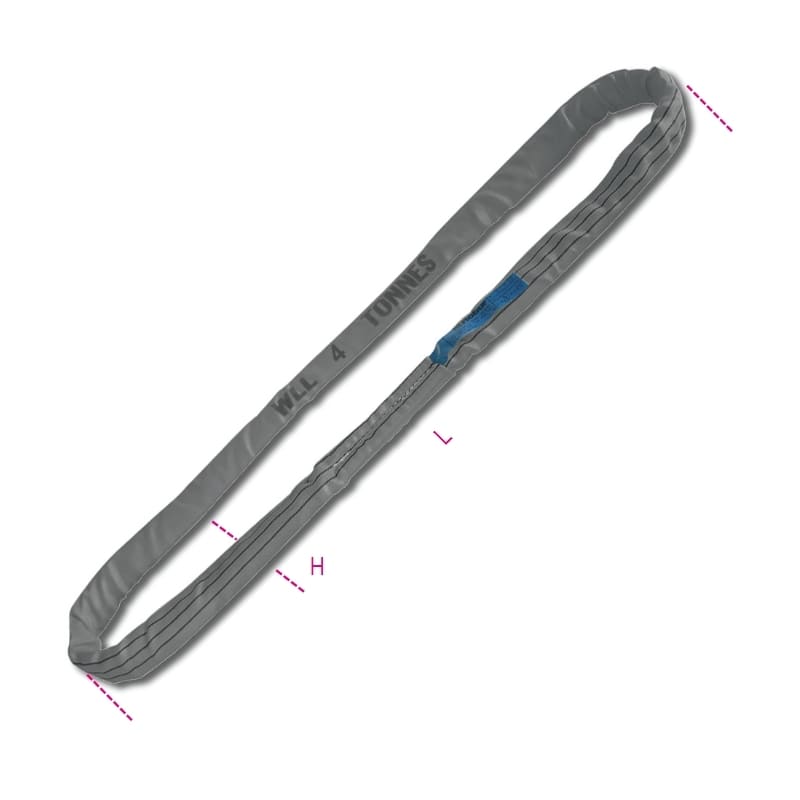 BETA - Braca per sollevamento 4t nastro ad anello continuo, grigio tessuto in poliestere ad alta tenacità (PES). Funi tonde EN1492-2 grigio 4 ton. - L5.
