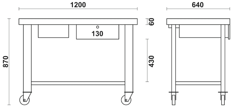 Il piano inclinato e i fori di scolo permettono il recupero dei liquidi direttamente nella vaschetta di raccolta. Dotato di: - 4 ruote girevoli di cui 2 con freno - Cassetto per utensili - Vaschetta di raccolta liquidi estraibile con capacità 7 litri - 2 ripiani