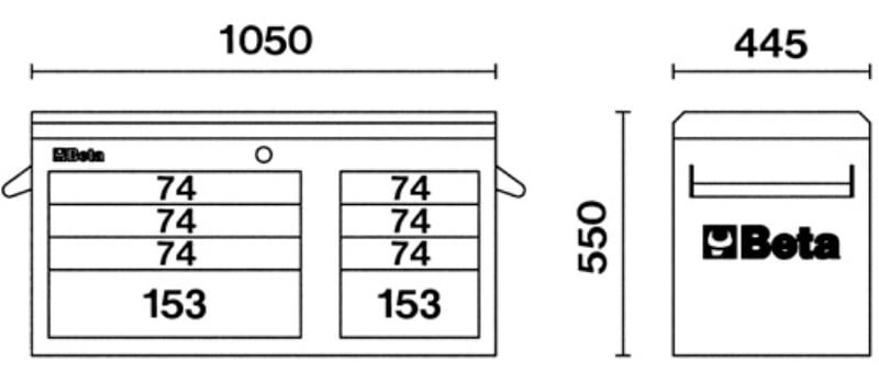 Caratteristiche principali: - 8 cassetti montati su guide telescopiche a sfera: 3 cassetti 570x410x74 mm 1 cassetto 570x410x153 mm 3 cassetti 313x410x74 mm 1 cassetto 313x410x153 mm. - Vano portautensili - Piano dei cassetti protetto da tappetini di gomma espansa - Serratura di sicurezza centralizzata frontale - Collocabile sul piano di lavoro del C38