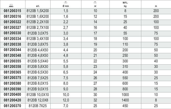 DATI TECNICI - coefficiente di sicurezza: 4 CERTIFICATI DISPONIBILI - Specifica Prodotto - Rapporto di Prova tipo 2.2 UNI EN10204