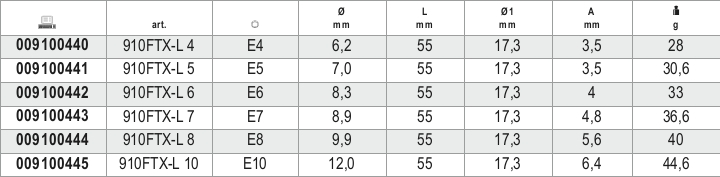 Chiavi a bussola con attacco quadro femmina 3/8, tipo lungo per viti con profilo torx cromate, bussole lunghe tx 3/8 ftx/l 6.