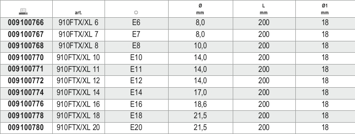 Chiavi a bussola extra-lunghe Torx 3/8 FTX/XL 8 cromate.