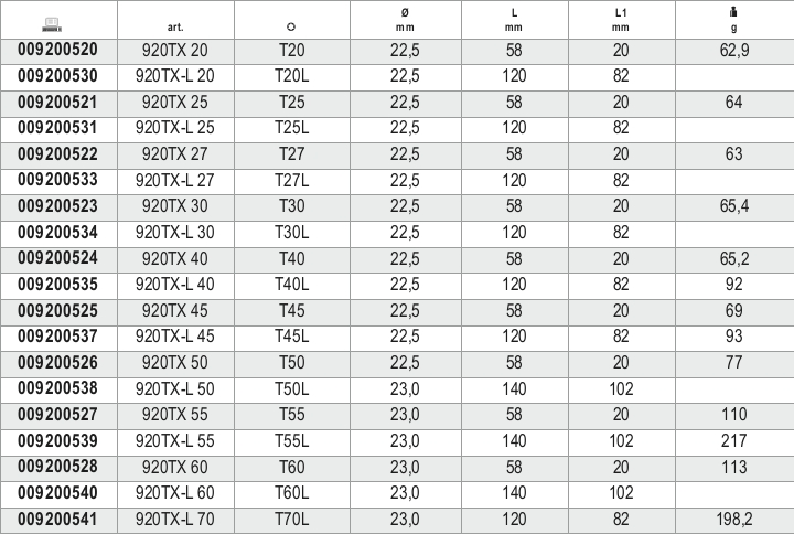 BETA - Chiavi a bussola maschio per viti con impronta Torx® attacco quadro femmina 1/2" cromate inserti bruniti TX 30.