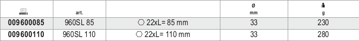 Chiavi a bussola per sonda Lambda con attacco quadro femmina 1/2" D22 SL110.