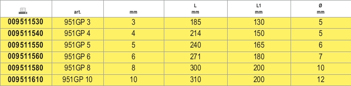 BETA - Chiavi a T GP esagonali maschio 3,0 mm con una estremità maschio esagonale.