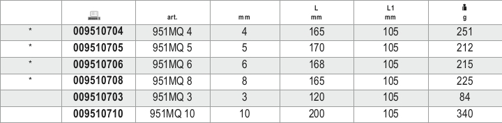 BETA - Chiavi a T maschio esagonale IS1000V MQ/6.