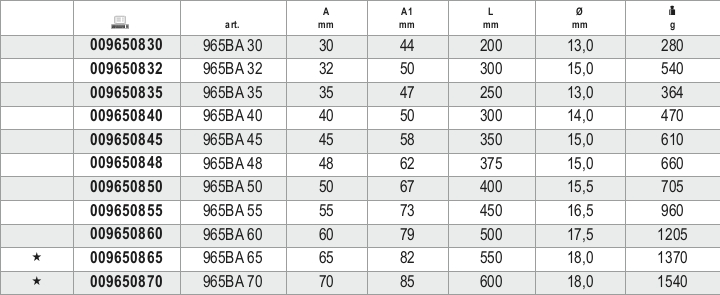 BETA - Chiavi di manovra semplici antiscintilla per valvole di sicurezza LEVE VALVOLA ANTISCINTILLA BA65 L550.
