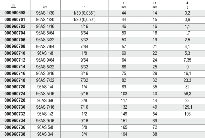 - Misure in pollici- Estremità smussate e piane per un accoppiamento ottimale con la vite.
