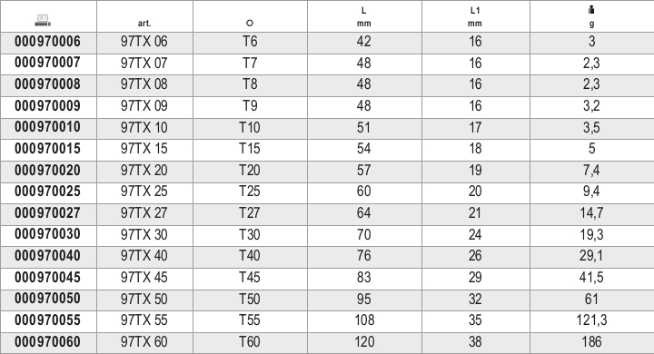 BETA - Chiavi maschio piegate per viti con impronta Torx® brunite TX 60.