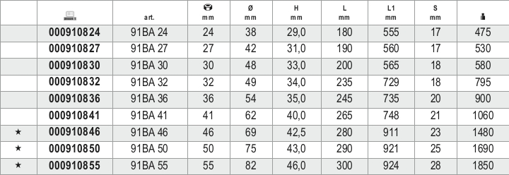 - Da utilizzare in accoppiamento con le prolunghe tubolari 92BA