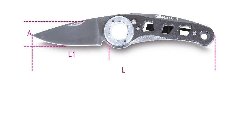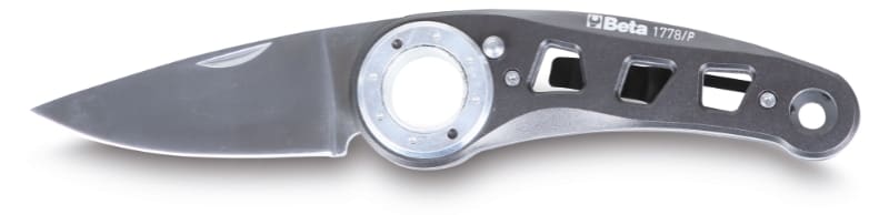 BETA - Coltello a serramanico lama e impugnatura in acciaio inossidabile alluminio con apertura a pulsante custodia inclusa. 017780088