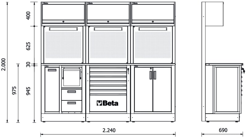 BETA - Combinazione arredo officina RSC50 e - 2,2mt 3 moduli.