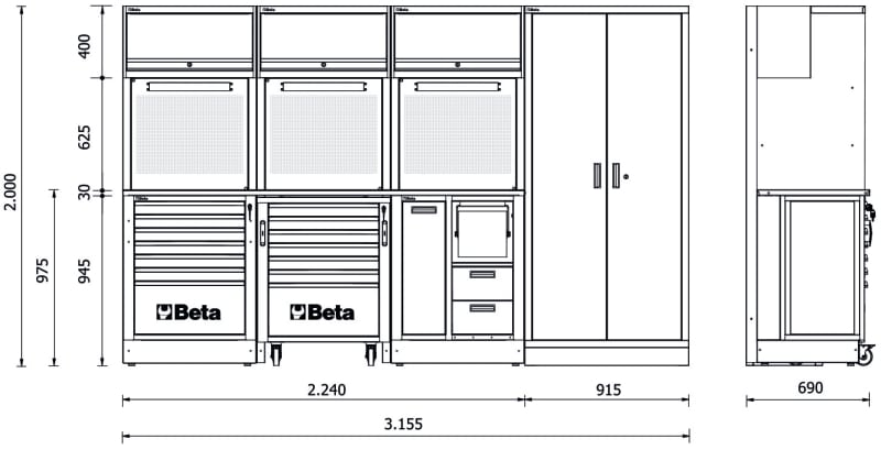 BETA - Combinazione arredo officina RSC50 F - 3,2MT 3MODULI + ARMADIO A2.