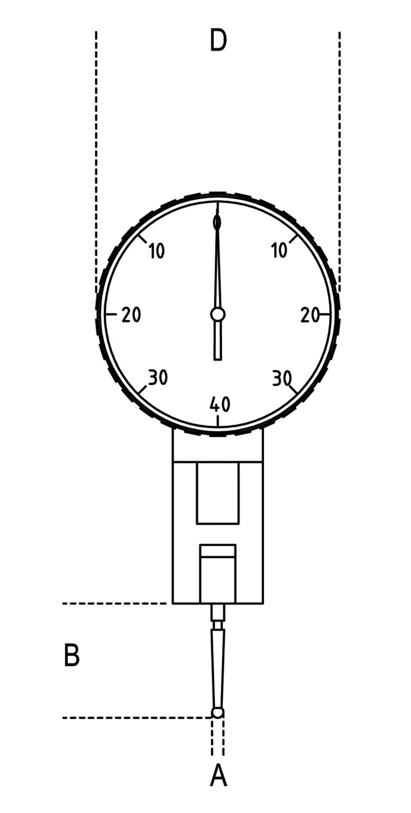 - Lettura centesimale - Quadrante girevole - Tastatore in metallo duro ø 2 mm - Movimento ad alta precisione montato su rubini - Codolo di attacco ø 8 mm C = Campo di comparazione