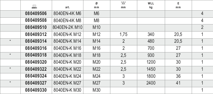 BETA - Confezioni appendibili 4 golfari maschi DIN580 C15E neri K-M8.