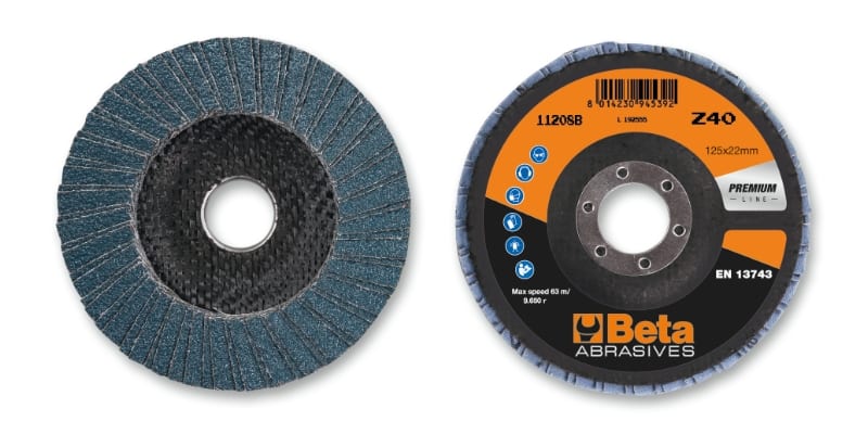 BETA - Dischi lamellari con tela abrasiva allo zirconio supporto in fibra di vetro e lamella doppia, dischi bi-lam zirc. sp/fv d125 gr60 ls. 112080106