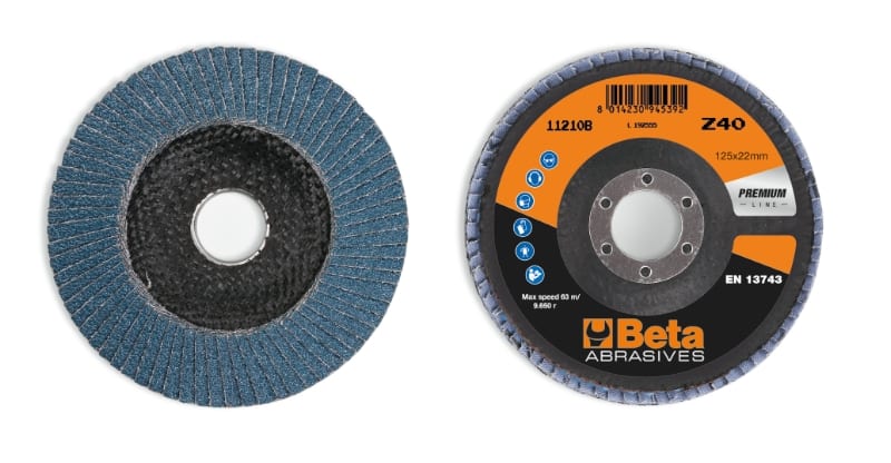 BETA - Dischi lamellari con tela abrasiva allo zirconio, supporto in fibra di vetro e lamella singola D125 grana 40.