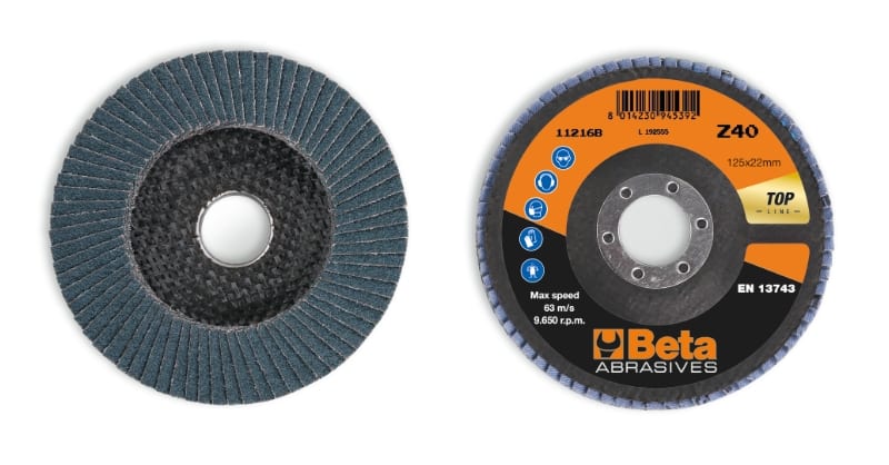 BETA - Dischi lamellari con tela abrasiva allo zirconio, supporto in fibra di vetro e lamella singola. Dischi mono-lam zirc. sp/fv d125 gr80 lp. 112160108