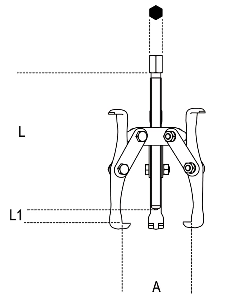 - Estremità delle griffe con due differenti profili.- Le griffe sottili, con cava, sono adatte ad operare in situazioni particolari (ad esempio ventole). - Effetto autoserrante. - Tre griffe aumentano la sicurezza di presa e la forza d\' estrazione.