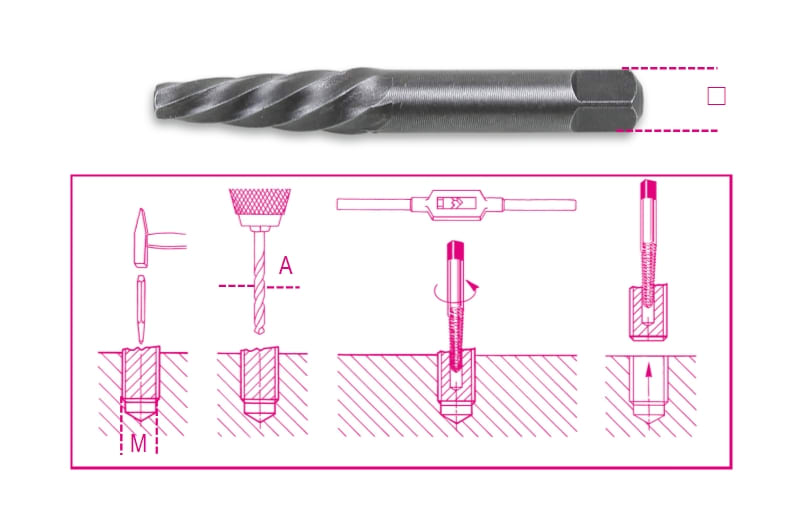 BETA - Estrattori conici per viti e prigionieri destrorsi danneggiati in acciaio legato M3/M6/1.